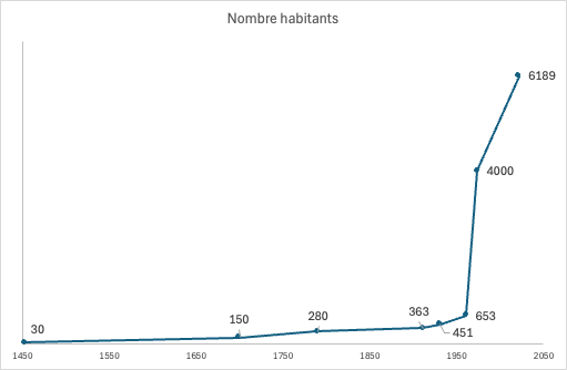 La population est passée de 700 à 4000 de 1971 à 1974, avec le programme de 1000 nouveaux logements en acquisition à prix modéré, dont une première tranche de 300 dès 1971. On parle de “chalandonnettes” car le ministre du logement, à l’origine du projet, est Albin Chalandon.